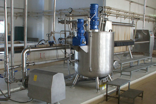 其中硅藻土過濾機(jī)(圓盤式或者板框式)為澄清過濾設(shè)備,以硅藻土等為助濾劑,以紙板(200×200板框)或者不銹鋼濾網(wǎng)(圓盤式)為支撐板,可以對(duì)各種酒、飲料、食品、醫(yī)藥、化工等行業(yè)的液態(tài)制品進(jìn)行澄清過濾。能使1~5μm以上直徑的菌體及固體微粒100%截留,并可保留原液的特性。
