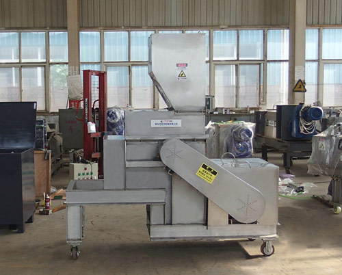 2、針對(duì)長纖維物料全自動(dòng)輸送帶壓輥進(jìn)料,壓輥可根據(jù)物料的厚度自動(dòng)升降,出料螺旋輸送。特別適合大批量作業(yè),可以抓車、鏟車上料。
